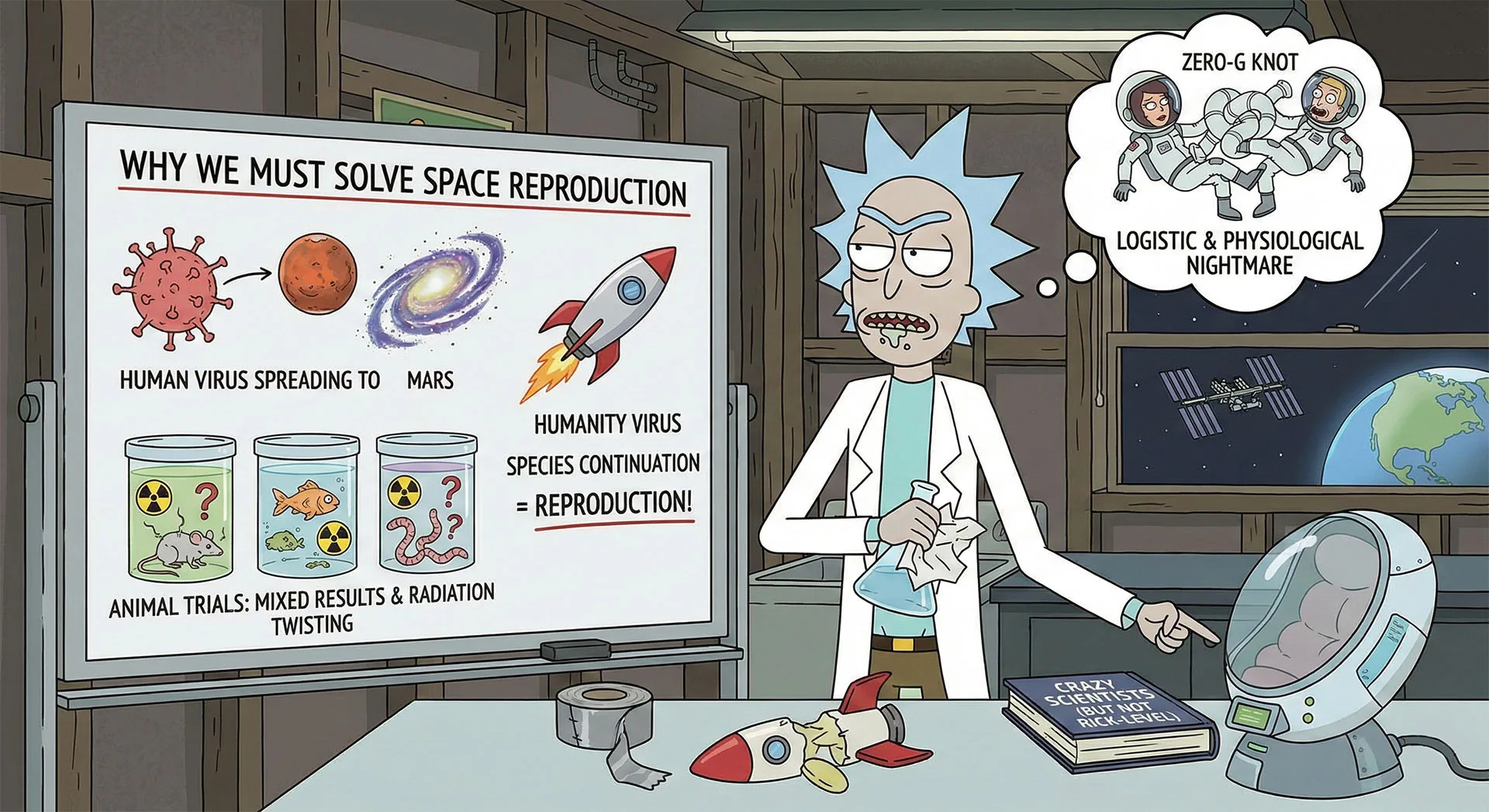 NASA 700 kişiyi yukarı gönderip kimse el ele bile tutuşmadı diyorsa ya yalan söylüyorlardır ya da astronot seçimlerini sadece aşırı sıkıcı insanlardan yapıyorlardır. Rick o radyasyondan yamulan farelerin hikayesini daha fazla anlatmalısın ilgimi çekti